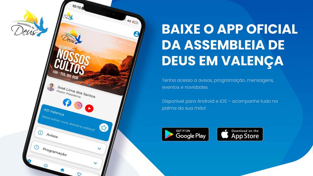 Faça o bem, baixe o app e participe ativamente das informações e ações da nossa igreja.