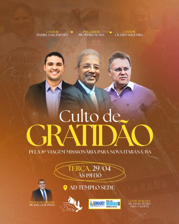 Nesta terça-feira ÀS 19:30 ; templo sede da igreja Assembleia de Deus em Valença Bahia