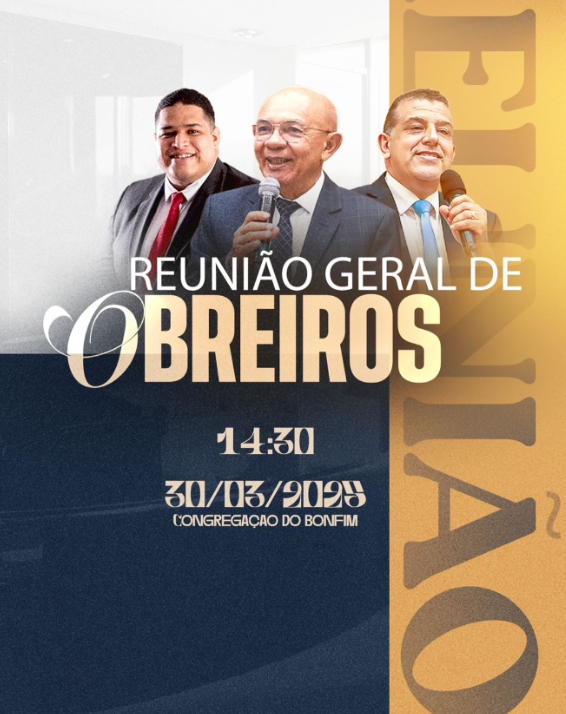 📢 Convocação para Reunião de Obreiros 📅 Data: 30 de março de 2025 (domingo)📍 Local: